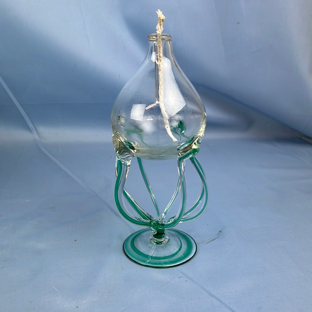 Olielampe i glas.